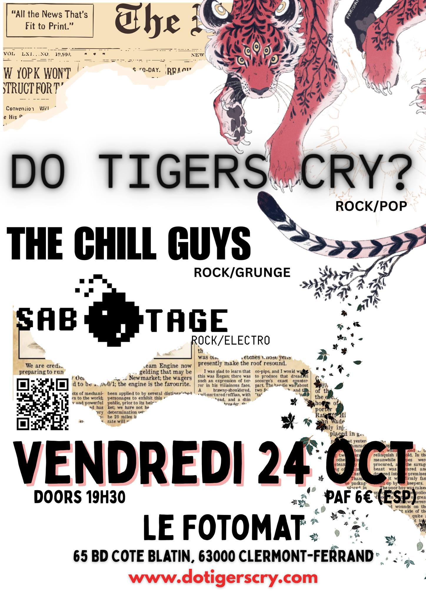 L’été est fini, mais Do Tigers Cry? revient sur scène avec 4 concerts exceptionnels pour clôturer 2025 en beauté. Le premier rendez-vous est au Fotomat, et on vous réserve des surprises : 2 nouveaux membres rejoignent l’aventure pour enrichir le son du groupe !