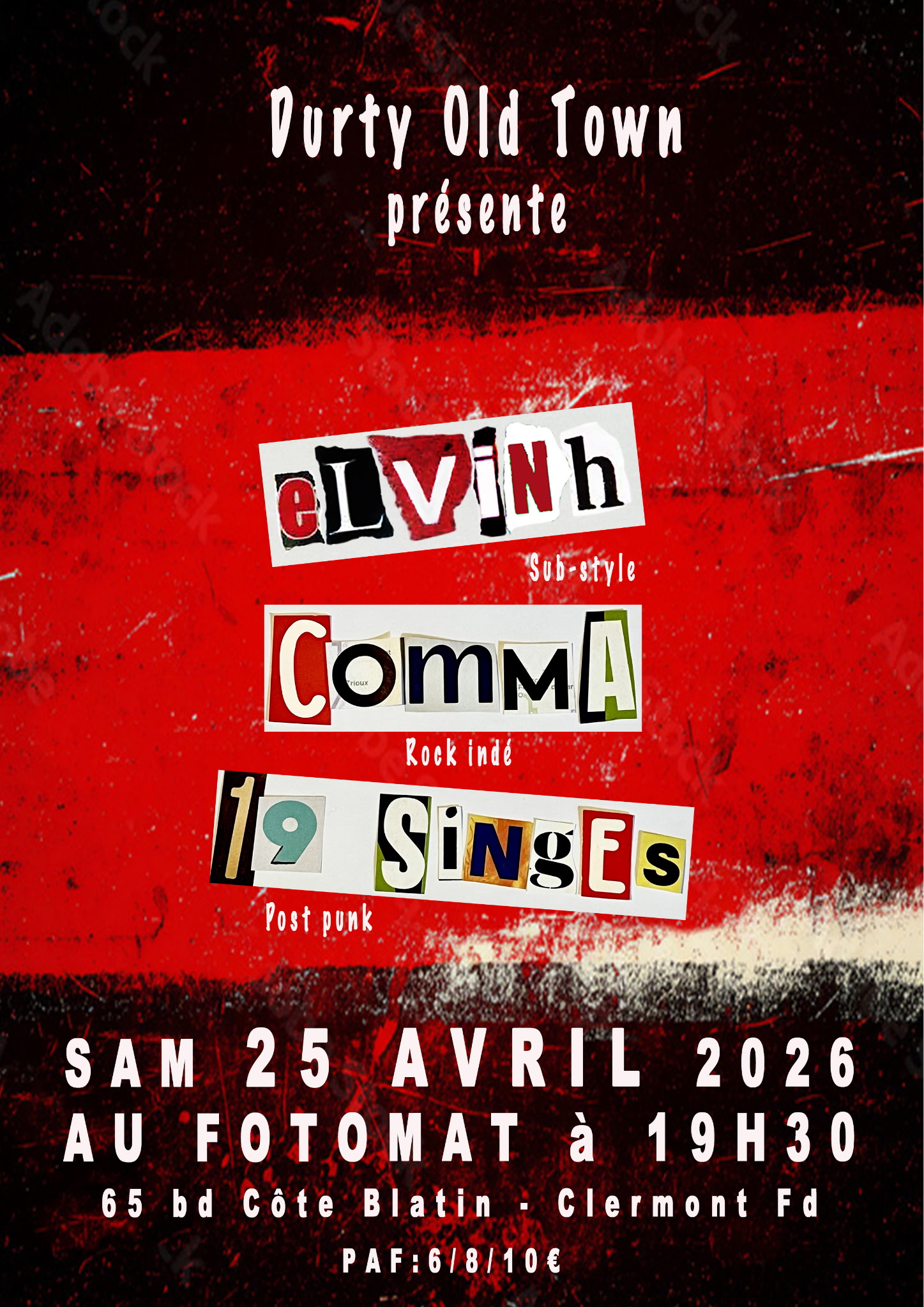 Après 10 ans d'existence, Durty Old Town sort enfin de sa vieille ville pour organiser sa première soirée hors de Durtol avec 3 groupes Rock. Paf : 6/8/10€