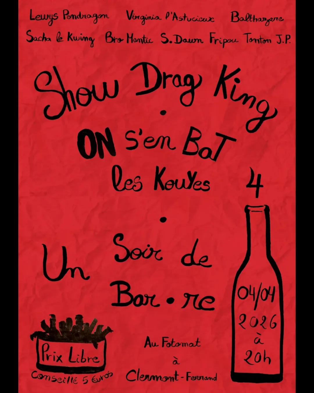 -On s’en bat les kouyes est un endroit d’expérimentation Drag King absurde, fait avec les moyens du bord, notre but est avant tout de passer une bonne soirée avec vous, de bien rire, de tester pleins de choses, et de vous faire participer… Arborer votre plus belle moustache si vous le souhaitez, ça sera très bienvenu !- 🌼