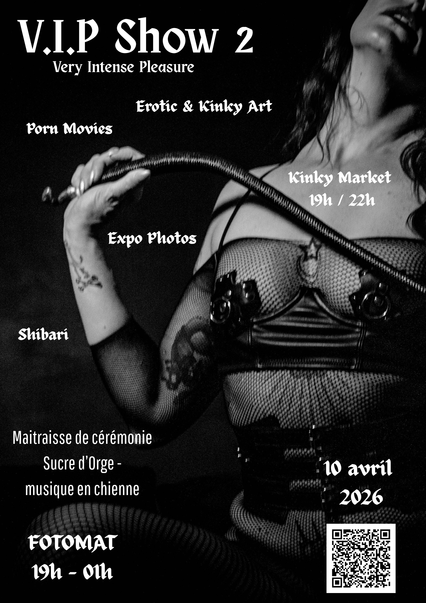 A l'occasion des 10 ans d'ouverture du Fotomat', nous vous convions à la deuxième édition de la soirée V.I.P. [ Very Intense Pleasure ], soirée originale d'arts érotiques que nous souhaitons inoubliables :