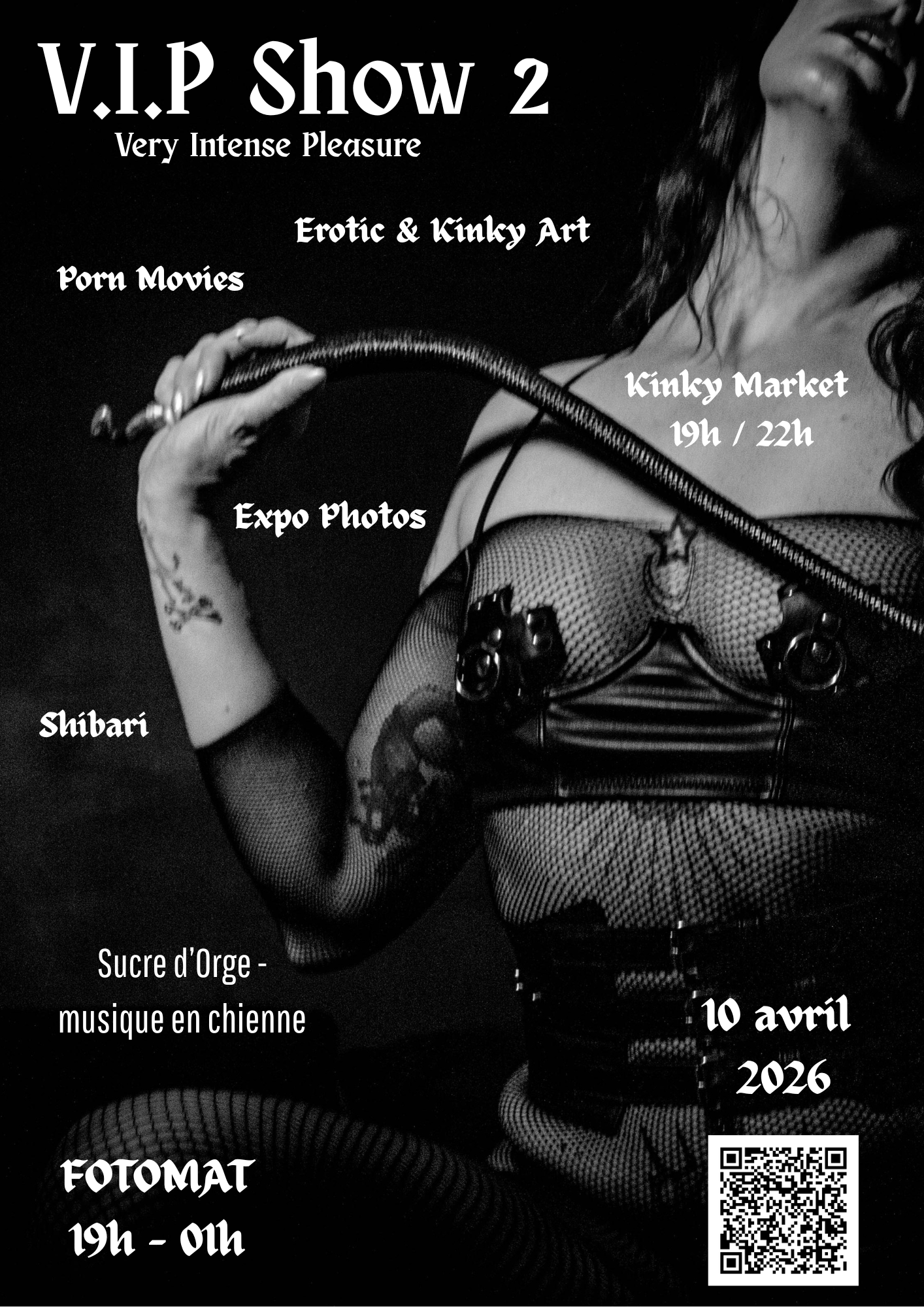 A l'occasion des 10 ans d'ouverture du Fotomat', nous vous convions à la deuxième édition de la soirée V.I.P. [ Very Intense Pleasure ], soirée originale d'arts érotiques que nous souhaitons inoubliables :